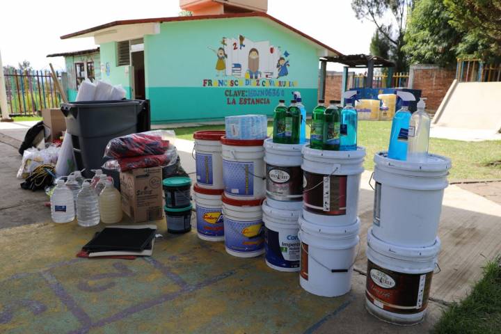 Por instrucciones de la secretaria de Educación, Yarabí Ávila González, se les llevaron útiles escolares, batas de preescolar, sillas, mesas, material didáctico, deportivo, de limpieza, kits de curación y de prevención de contagios de COVID... Ver más...