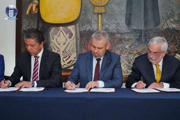 Ante la presencia del gobernador del estado, Alfredo Ramírez Bedolla, el rector de la UMSNH, Raúl Cárdenas Navarro, y el rector de la UNAM, Enrique Luis Graue... Ver más...