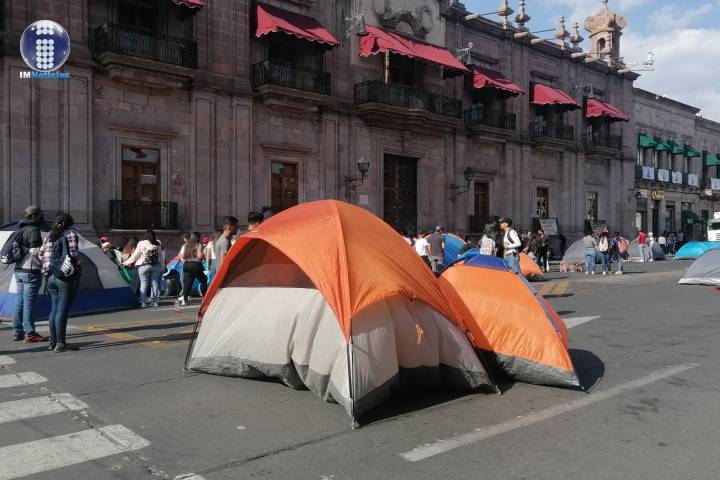 Estudiantes miembros de la Organización de Normales Oficiales del Estado de Michoacán (ONOEM) instalaron un plantón indefinido en rechazo a la aplicación del examen del Centro Nacional de Evaluación para la Educación Superior (Ceneval). Dicho plantón está a las afueras de Palacio de Gobierno y el Palacio Legislativo en el Centro Histórico de Morelia a donde llegaron tras una marcha por la avenida principal de la ciudad. Esta man...