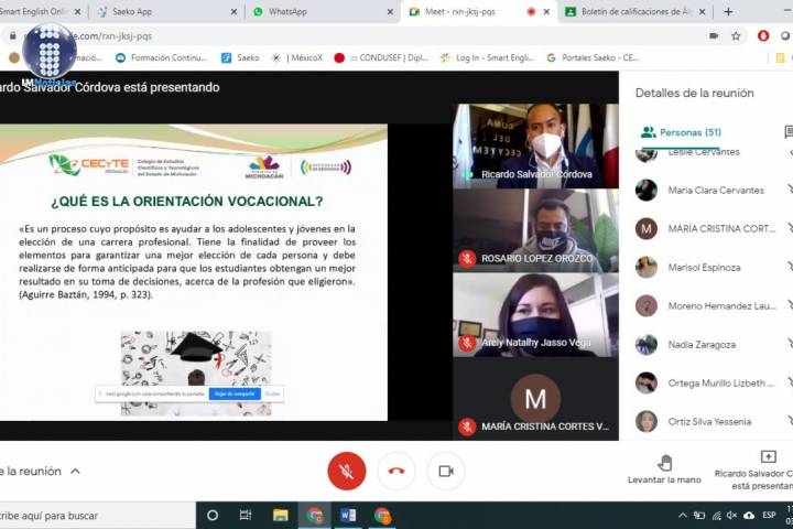 NOTICIAS 08/02/2021Orientan a estudiantes del plantel Penjamillo del CECyTEM sobre elección de bachilleratoCon el objetivo de brindarles orientación vocacional en la toma de decisiones a los 124 estudiantes que concluyeron el quinto semestre del plantel Penjamillo del Colegio de Estudios Científicos y Tecnológicos del Estado de Michoacán (CECyTEM), directivos del centro educativo llevaron a cabo el Webinar: "La importancia de la orientación vocacional".