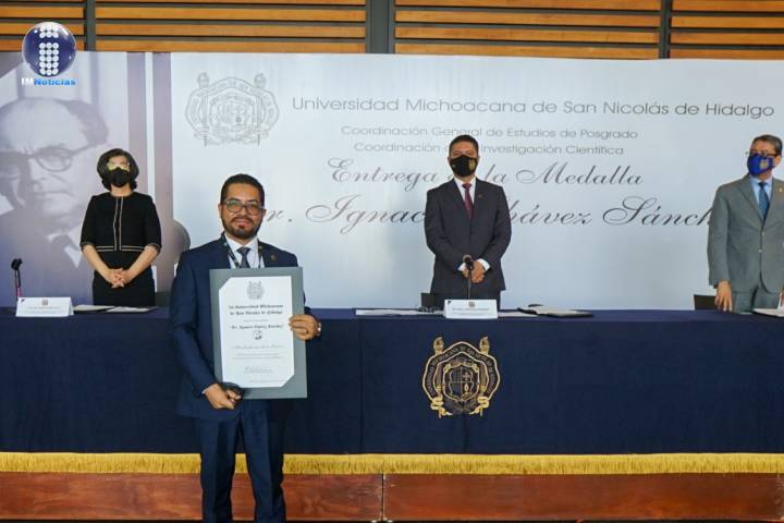 El rector de la Universidad Michoacana de San Nicolás de Hidalgo (UMSNH), Raúl Cárdenas Navarro, felicitó a los galardonados de la medalla "Dr. Ignacio Chávez Sánchez", reconocimiento que entrega esta Casa de Estudios a los mejores promedios de posgrado.