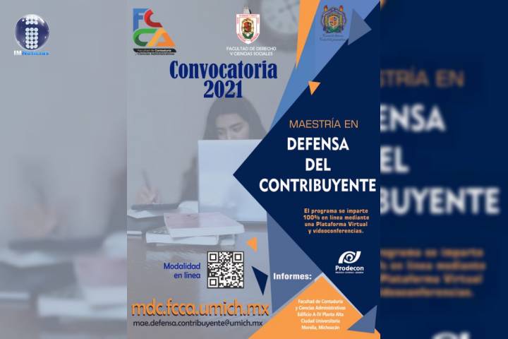 Ante la creciente demanda de especialistas en áreas específicas del Derecho Fiscal, la Universidad Michoacana de San Nicolás de Hidalgo (UMSNH), a través de la Facultad de Contaduría y Ciencias Administrativas y la Facultad de Derecho y Ciencias Sociales, abrió la convocatoria 2021 para su Maestría en Defensa del Contribuyente.