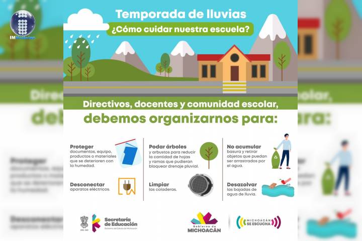 Debido a que está por comenzar la temporada de lluvias, la Secretaría de Educación en el Estado (SEE), exhorta a las y los directivos de los planteles en todos su tipos y niveles educativos, para que implementen medidas preventivas que coadyuven a mantener espacios limpios y seguros y así evitar inundaciones y contagios por COVID-19, esto antes de que arranque el ciclo escolar 2020-2021. Por ello, la SEE solicita realizar jornadas de limpi...