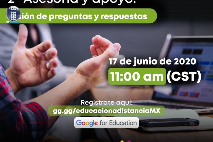 La Secretaría de Educación en el Estado (SEE), invita a docentes, y estudiantes a consultar el próximo webinar del 17 de junio donde se brindará apoyo y asesoría sobre las dudas más recurrentes de las cuentas Google for Education Para ello se contará con la participación de capacitadores certificados como Laura Camacho y Prisicila Rodríguez, quienes les proporcionarán las herramientas para eficientar sus actividades académicas a t...