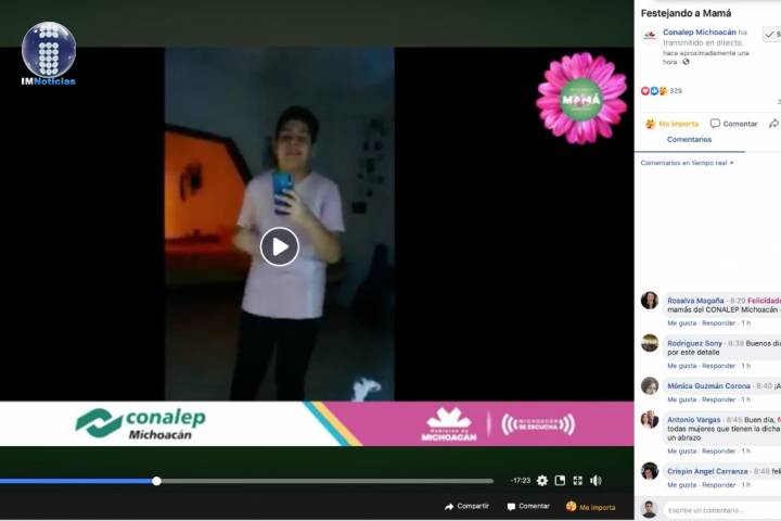 NOTICIAS 08/05/2020Festejan virtualmente a mamás del Conalep El Conalep Michoacán celebró desde casa el Día de la Madre con poesía, música y felicitaciones a través de las redes sociales de la institución.