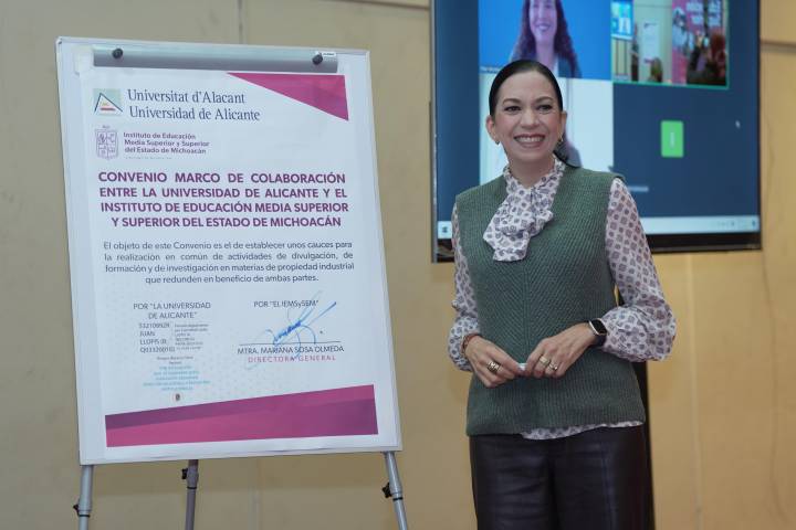 NOTICIAS 10/12/2025Impulsará Michoacán estudios profesionales en propiedad intelectual: IemsysemEl Instituto de Educación Media Superior y Superior del Estado de Michoacán (Iemsysem) formalizó una alianza con la Universidad de Alicante, España, con el propósito de fortalecer la formación profesional, la divulgación e investigación en materia de propiedad Intelectual, un campo clave para el desarrollo del estado.