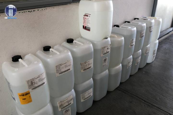Al respecto, un total de mil 100 litros, en 55 garrafas de 20 litros, se en... Ver más...