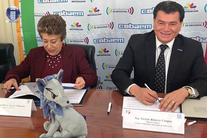 NOTICIAS 27/02/2020Cobaem y el Instituto Dicormo hacen alianza en pro de la educaciónCon la finalidad de impulsar la continuación de estudios superiores, así como fomentar la capacitación de las y los trabajadores, el Colegio de Bachilleres del Estado de Michoacán (Cobaem) y el Centro Educativo de Diseño, Dicormo, signaron un convenio de colaboración en pro de la educación.