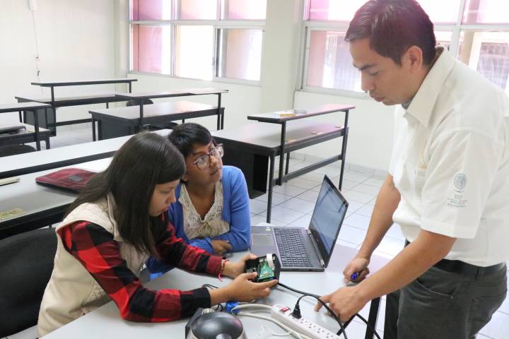 Las estudiantes de Ingeniería en Sistemas Computacionales e Ingeniería Industrial, respectivamente, son asesoradas por el pro... Ver más...