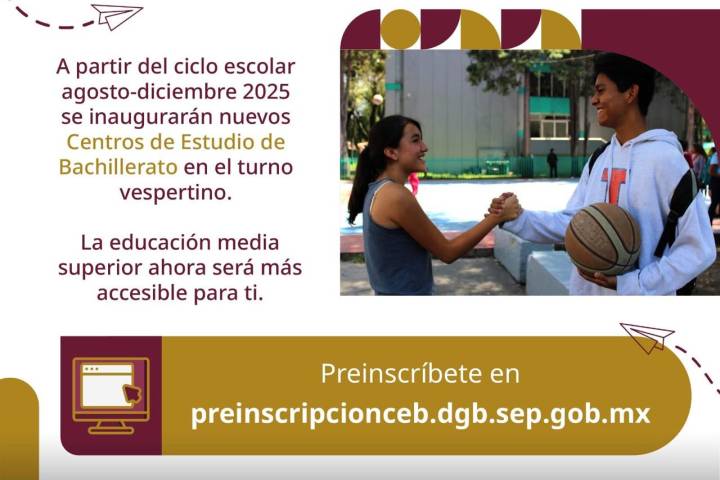 NOTICIAS 21/07/2025Iemsysem invita a jóvenes a inscribirse en nuevos bachilleratos en Morelia y UruapanEl Instituto de Educación Media Superior y Superior del Estado de Michoacán (Iemsysem) informa que las preinscripciones a los nuevos Centros de Estudios de Bachillerato (CEB) en Morelia y Uruapan se mantienen abiertas, por lo que invita a las y los jóvenes que concluyeron la secundaria a registrarse de manera oportuna.