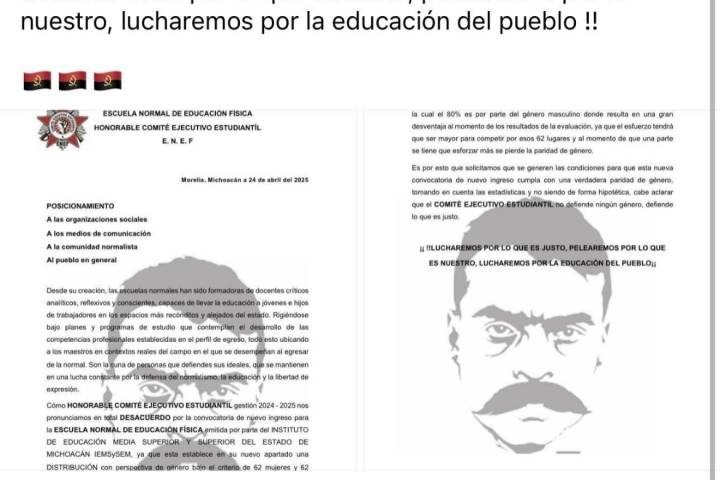 A través de un documento el denominado Comité Ejecutivo Estudiantil, señaló que ahora rechazan la Convocatoria de Ingreso para el ciclo escolar 2025-2026, ya que el Instituto de Educación M... Ver más...