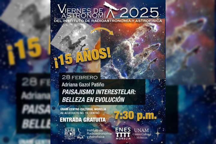 NOTICIAS 26/02/2025Viernes de Astronomía cumple 15 años y llega al UNAM Centro Cultural Morelia¿Qué realmente vemos en una imagen bonita del universo? Las coloridas imágenes de nebulosas que vemos rondando en redes sociales, como las tomadas pos los telescopios espaciales James Webb o Hubble, nos dan mucha información sobre lo que ocurre en esas regiones del espacio, además de ser estéticamente bellas.