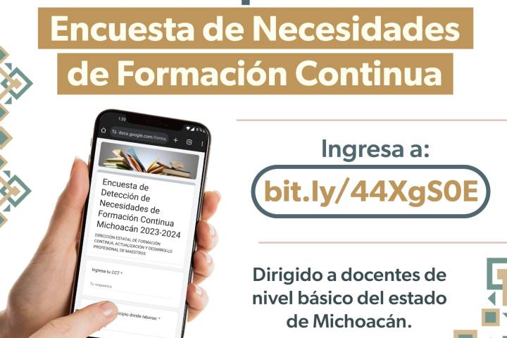NOTICIAS 27/05/2024SEE lanza encuesta para alistar nuevos cursos a docentesCon el objetivo de mantener una efectiva actualización de maestras y maestros, la Secretaría de Educación del Estado (SEE) lanza una encuesta para conocer las necesidades de formación continua.