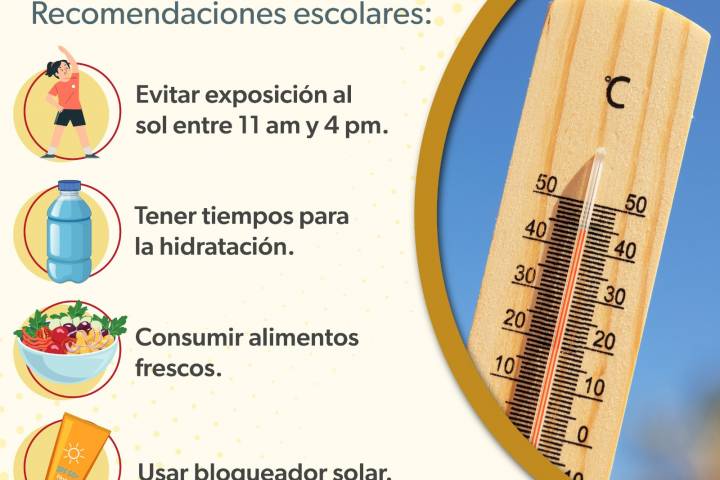 NOTICIAS 08/04/2024SEE emite recomendaciones a escuelas por altas temperaturas Con la entrada de la primavera y el aumento en las temperaturas, la Secretaría de Educación del Estado (SEE) emite medidas de protección a implementar en las escuelas para salvaguardar la salud y el bienestar de las comunidades escolares durante los meses de calor.