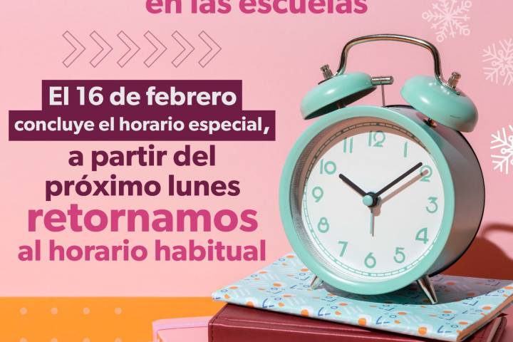 Este viernes concluye el horario de invierno para la entrada a las escuelas de nivel básico, informó la Secretaría de Educación del Estado (SEE); a partir del lunes 19 de febrero las actividades se retoman en el horario de ingreso habitual.