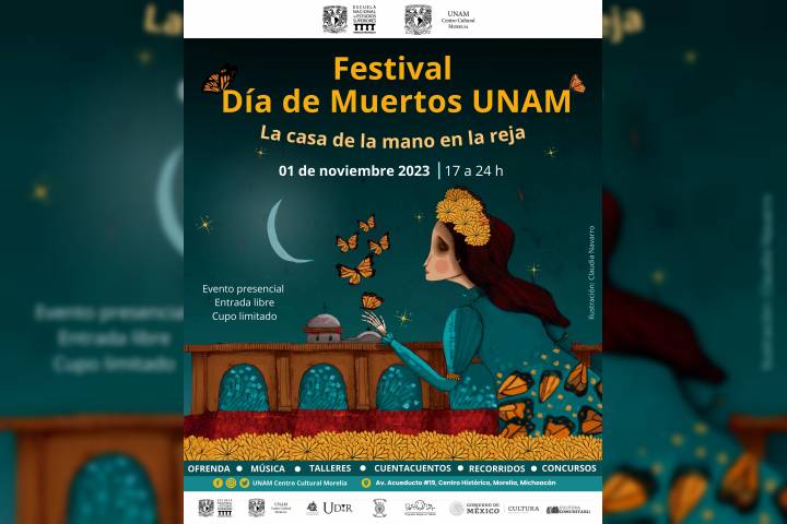 NOTICIAS 27/10/2023Nace el Festival de Día de Muertos UNAM "La casa de la mano en la reja"La UNAM Centro Cultural Morelia, de la Escuela Nacional de Estudios Superiores (ENES Morelia UNAM), organiza el primer Festival de Día de Muertos UNAM "La casa de la mano en la reja" el próximo 01 de noviembre, que tendrá eventos desde las 17 h y hasta media noche.