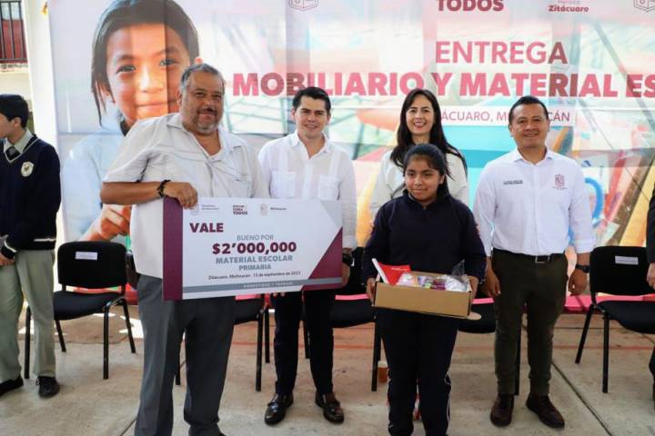 NOTICIAS 21/09/2023Casi 9 mil estudiantes beneficiados con entrega de materiales en ZitácuaroCerca de 9 mil estudiantes de diferentes escuelas de Zitácuaro recibieron materiales escolares como parte de la histórica inversión de 242 millones de pesos que se realiza para el fortalecimiento de los planteles educativos en Michoacán.