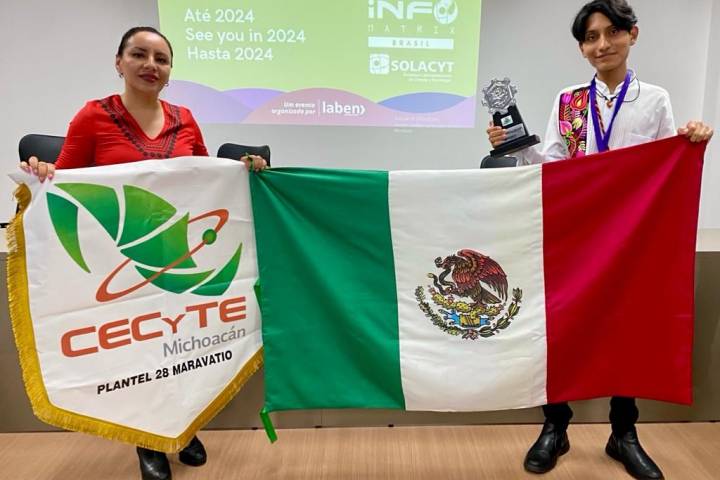 NOTICIAS 26/09/2023Se la rifa alumno del Cecytem; gana 3 premios de ciencia en BrasilCristofer Castro Álvarez, alumno del Colegio de Estudios Científicos y Tecnológicos del Estado de Michoacán (Cecytem), ganó los tres premios principales en Infomatrix 2023, el concurso latinoamericano de proyectos estudiantiles de ciencia y tecnología que celebró del 16 al 23 de septiembre en Brasil.