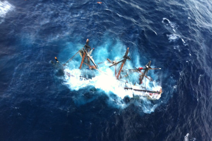 La nave fue abandonada por la tripulación en balsas salvavidas mientras se hundía lentamente en medio de olas de hasta nueve metros de alto causadas por la megatormenta Sandy frente a las costas de Carolina del Norte.