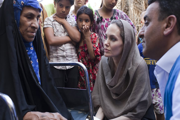 NOTICIAS 16/09/2012Jolie clama apoyo internacional para refugiados de SiriaAl finalizar su recorrido por países vecinos de Siria, Angelina Jolie pasó el día en un campo de refugiados sirios en el norte de Iraq, donde exhortó a la comunidad internacional a colaborar con las naciones que rodean Siria para que puedan mantener sus fronteras abiertas a las víctimas de la guerra.