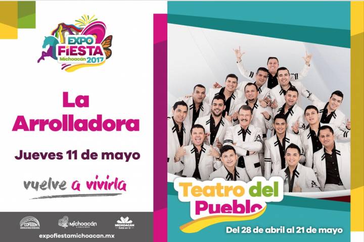 Este jueves a las 21:00 horas en el Teatro del Pueblo de la Expo Fiesta Michoacán 2017 se presentará La Arrolladora para complacer a miles de seguidores michoacanos que cantarán y bailarán al ritmo de los mejores éxito de esta banda sinaloense, como "Cabecita dura" y "El final de nuestra historia". Antes, a las 19:00 horas, en las instalaciones del Recinto Ferial será transmitido el partido de futbol entre Monarcas Morelia y Xolos de Ti...