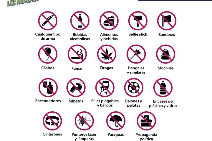 En los puntos de inspección, ubicados en los accesos 1, 2, 3, 4, 6 y 7, los agentes de seguridad revisarán que las personas no ingresen: