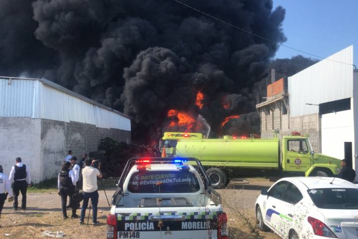 NOTICIAS 07/01/2023Arde depósito de llantas al norte de Morelia.La tarde de este sábado, un predio cercano a la carretera Morelia ? Salamanca, en el que había almacenadas un gran número de llantas usadas, ardió en llamas, lo que movilizó de manera inmediata al personal de Bomberos Morelia y a sus homólogos de Tarímbaro para atender la emergencia.