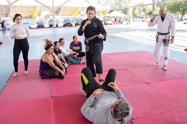 Con una participación de 25 mujeres, se instruyó sobre técnicas de jiu-jitsu brasileño que buscan lastimar articulaciones menores de las manos, además de defensa... Ver más...