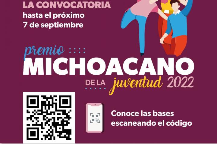 NOTICIAS 05/09/2022AmplÃa Ijumich convocatoria al Premio Michoacano de la Juventud 2022El Instituto de la Juventud Michoacana (Ijumich) informa que se amplÃa la convocatoria al Premio Michoacano de la Juventud 2022 hasta el dÃa 7 de septiembre hasta las 15:00 horas.