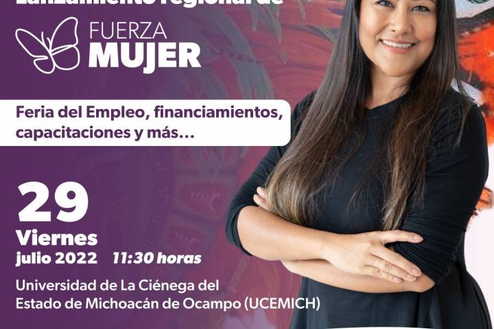 NOTICIAS 28/07/2022Arrancará Fuerza Mujer en la Región Lerma-Chapala La SecretarÃa de Igualdad Sustantiva y Desarrollo de las Mujeres Michoacanas (Seimujer) y Sà Financia invitan al lanzamiento de Fuerza Mujer en la región Lerma-Chapala, a realizarse en la Feria Regional del Empleo del municipio de Sahuayo, el próximo viernes 29 de julio.