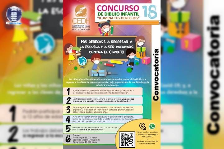 El Consejo de la Comisión Estatal de los Derechos Humanos (CEDH) en Michoacán autorizó la emisión número 18 del Concurso de Dibujo "Ilumina tus Derechos", que año con año realiza el organismo, para conocer la opinión de las niñas y niños del Estado en torno a sus derechos fundamentales.