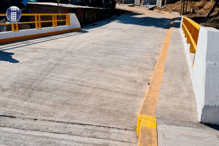 La construcción del puente urbano consistió en la colocación de concreto hidráulico, fabricación de muros de concreto, banquetas laterales, balizamiento y colocación de parapeto metálico con una longitud total de 47 metros de largo.