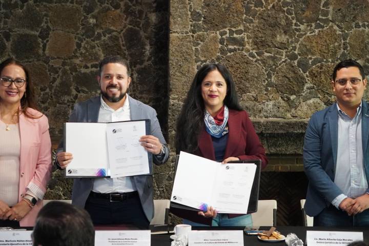 Al firmar un convenio de colaboración con la Secretaria de Cultura del Estado (SECUM), Tamara Sosa Alanís, el presidente de la Comisión Estatal de los Derechos Humanos (CEDH), Josué Mejía, dijo que las alianzas contribuyen a construir un Michoacán mejor.
