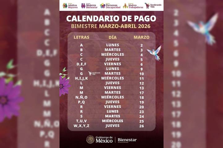 NOTICIAS 02/03/2026Inicia pago del bimestre marzo-abril de Programas para el BienestarEn conferencia matutina: "Las mañaneras del pueblo", que encabeza la Presidenta de México, Claudia Sheinbaum Pardo, la secretaria de Bienestar, Ariadna Montiel Reyes, informó que, del 2 al 26 de marzo, se realiza el pago del bimestre marzo-abril a 18.8 millones de derechohabientes y beneficiarios de las Pensiones y Programas de Bienestar con inversión social de 104 mil 695 millones de pesos (mdp) para este bimestre.