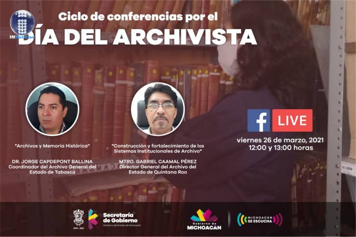 NOTICIAS 25/03/2021Invita Segob a ciclo de conferencias con motivo del DÃa del Archivista La SecretarÃa de Gobierno, invita a las y los interesados en temas archivÃsticos, al ciclo de conferencias sobre esta materia, que se llevará a cabo a través de las plataformas digitales, este viernes 26 del presente mes y año.