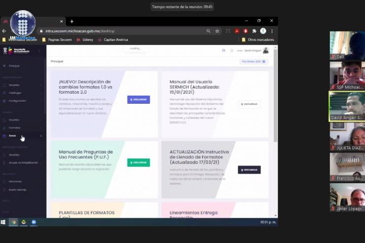NOTICIAS 24/03/2021Brindó Secoem capacitación a servidores públicos estatales sobre el sistema de entrega-recepción El Gobierno de Michoacán, a través de la SecretarÃa de ContralorÃa del Estado (Secoem), brindó capacitaciones en lÃnea del Sistema Electrónico de Entrega-Recepción del Estado de Michoacán (SERMICH), versión 2.0, a los titulares de los Órganos Internos de Control (OIC) y usuarios de las dependencias, coordinaciones y entidades de la administración pública estatal.