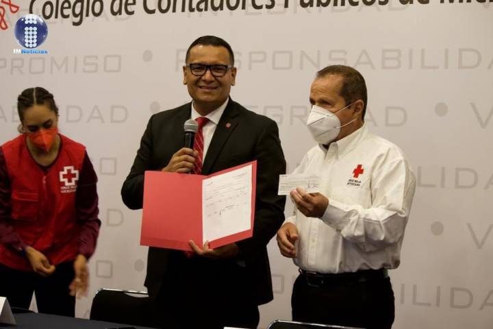 NOTICIAS 16/03/2021CCPM dona mas de 32 millones de pesos a la Cruz RojaEl Colegio de Contadores Públicos de Michoacán (CCPM), realizó la donación de 32 mil 755 pesos a la Cruz Roja Mexicana Delegación Morelia, recurso que fue recaudado durante el curso con causa "Declaración Anual de Personas Morales 2021", impartido por los integrantes de la Comisión Fiscal, Marcos Vela Godínez y Gustavo Oblea Rosales.
