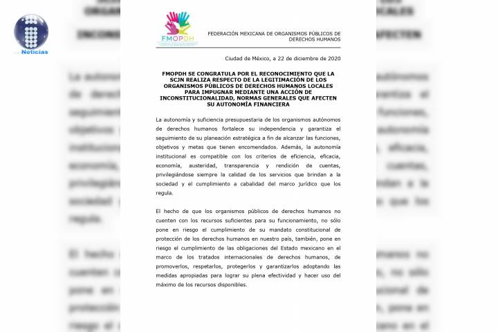 NOTICIAS 22/12/2020CEDH Michoacán se suma a pronunciamiento para garantizar suficiencia presupuestaria de los organismos públicos de derechos humanos La Comisión Estatal de los Derechos Humanos (CEDH) Michoacán se suma al pronunciamiento de la Federación Mexicana de Organismos Públicos de Derechos Humanos (FMOPDH) para que los poderes legislativos federales y locales garanticen la autonomía y suficiencia presupuestaria de los organismos públicos de derechos humanos.