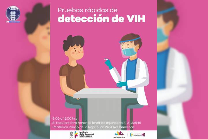 NOTICIAS 30/11/2020Otorgará Ijumich pruebas rápidas y gratuitas de detención de VIH En el marco del Día Internacional de la Lucha Contra el VIH, que se celebrará el primero de diciembre, el Instituto de la Juventud Michoacana (Ijumich) otorgará pruebas rápidas y gratuitas de detención de VIH en sus instalaciones, ubicadas en Periférico Paseo de la República 2451 en Avenida Camelinas de 9:00 de 3:00 de la tarde.