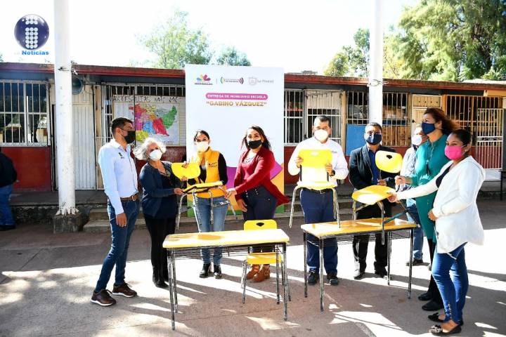 NOTICIAS 17/11/2020 Entrega IIFEEM mobiliario a escuelas de La Piedad"Cuando regresen nuestros niños a la escuela, estarán felices al ver sus nuevos mesabacos. Agradecemos el apoyo, porque no sólo los niños estarán contentos, sino toda la comunidad escolar", aseveró la directora de la Primaria "Gabino Vázquez", Roxana Moreno López.