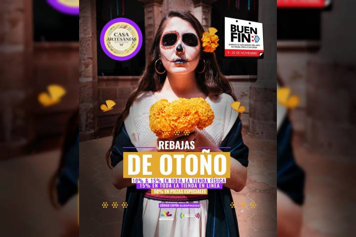 NOTICIAS 09/11/2020Invita IAM a adquirir artesanÃa en el Buen FinCon motivo de El Buen Fin, a partir de hoy y hasta el próximo 20 de noviembre, en las tiendas Casa de las ArtesanÃas, del Instituto del Artesano Michoacano (IAM), más de 10 mil piezas de todas las ramas artesanales tendrán descuentos del 10 y 15 por ciento en la tienda fÃsica, asà lo informó la directora general del IAM, MarÃa Emilia Reyes Oseguera.