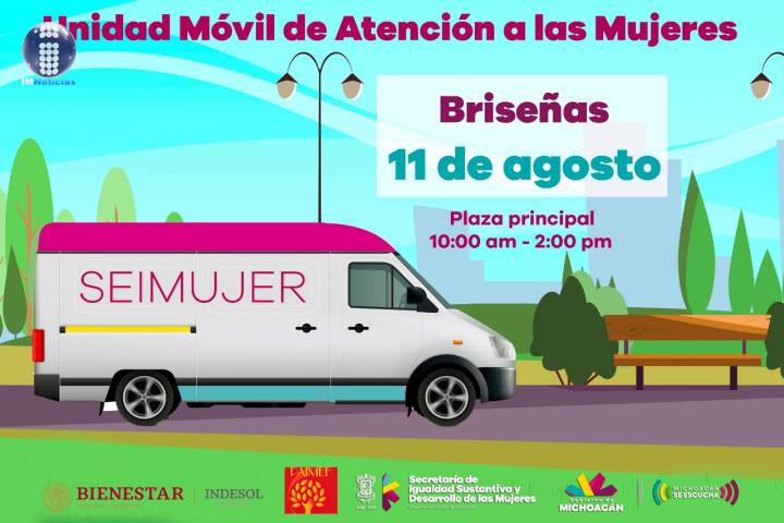NOTICIAS 10/08/2020Mañana en Briseñas, Unidad Móvil de Atención a la mujer Con el objetivo de reforzar las medidas de prevención y atención de todas las formas de violencia contra niñas y mujeres al interior del Estado, la Secretaría de Igualdad Sustantiva y Desarrollo de las Mujeres (Seimujer), llevará este 11 de agosto al municipio de Briseñas la Unidad Móvil de Atención.