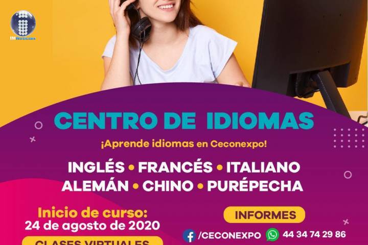 NOTICIAS 16/07/2020Abre CECONEXPO clases virtuales en su Centro de Idiomas El Centro de Idiomas del Centro de Convenciones de Morelia inició su proceso de inscripción a los estudiantes de nuevo ingreso que deseen aprender otra lengua. Las clases virtuales iniciarán el 24 de agosto.