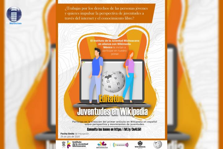 NOTICIAS 09/07/2020Invitan Ijumich y Wikipedia a participar en el Primer Editatón sobre Juventudes Con el objetivo de incentivar la participación de los jóvenes de todo el país en la creación de políticas públicas que los favorezcan, el Instituto de la Juventud Michoacana (Ijumich), en alianza con Wikipedia en español, invita a participar en el primer Editatatón sobre Juventudes en Wikipedia, evento virtual que se realizará del 3 al 12 de agosto, en el marco del Día Internacional de la Juventud.