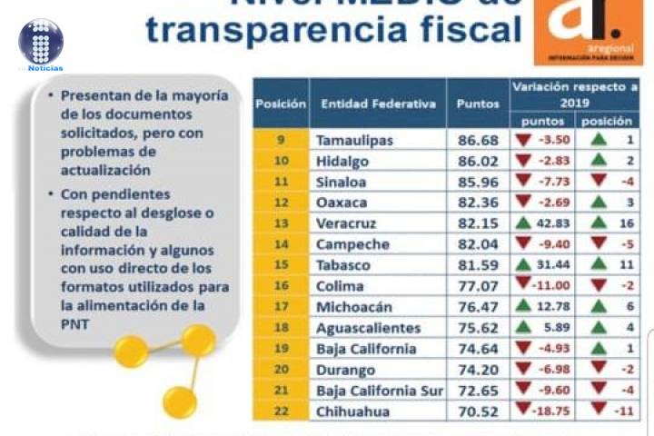 Lo anterior dentro del índice de Transparencia y Disponibilidad de las Entidades Federativas (TDIF), donde se señaló que presenta la mayoría de los documentos.