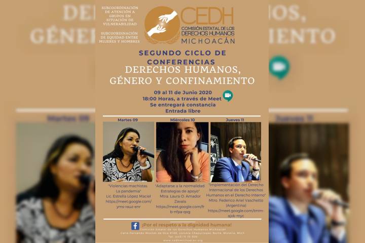 NOTICIAS 08/06/2020Replica CEDH ciclo de conferencias virtual Derivado de la demanda de participación generada, la Comisión Estatal de los Derechos Humanos (CEDH) replicará el Ciclo de Conferencias virtual Derechos Humanos, Género y Confinamiento, dirigido a todo público.