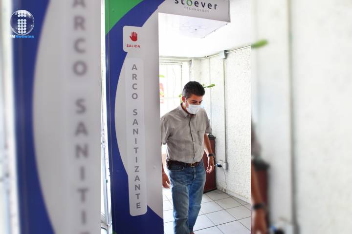 NOTICIAS 05/06/2020 Refuerzan medidas preventivas en la Comisión Estatal del Agua con medio arco sanitizanteComo una medida de prevención e higiene entre las y los trabajadores de la Comisión Estatal del Agua y Gestión de Cuencas (CEAC), asà como con los usuarios que realizan algún trámite, se instaló en el acceso a las oficinas de la dependencia un medio arco sanitizante que contribuye a mitigar la propagación del virus COVID-19.