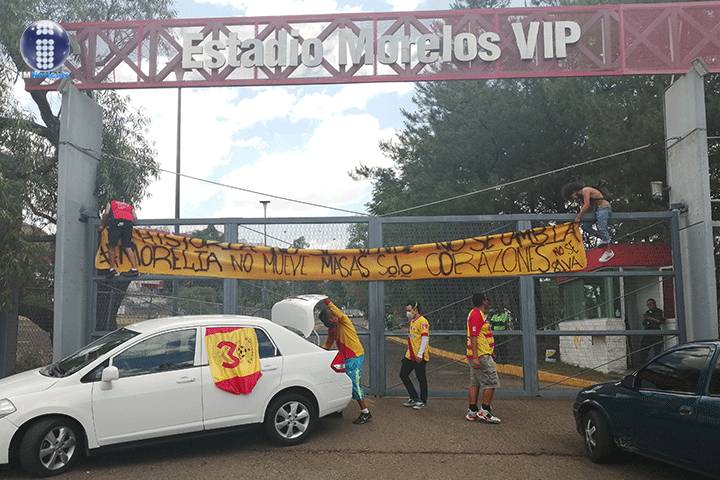 NOTICIAS 30/05/2020Bloquea afición acceso VIP del estadio Morelos Bajo el slogan "La historia no se vende, no se cambia. Morelia no mueve masas, sólo corazones", seguidores del equipo Monarcas Morelia bloquean con una manta y dos autos el acceso VIP del estadio Morelos, para evitar que los camiones de la empresa Castores salgan de las instalaciones con el equipamiento rumbo a su nueva sede, Mazatlán, Sinaloa.