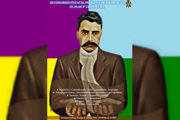 NOTICIAS 16/01/2020Convocan al III Congreso Estatal Indígena de Michoacán: El Plan P´urhépecha.Ante los recientes hechos de violencia y represión en las comunidades originarias por parte del Estado mexicano, el Consejo Supremo Indígena de Michoacán (CSIM) convoca al III Congreso Estatal Indígena de Michoacán: El Plan P´urhépecha, denominado así en honor al Plan de Ayala realizado por Emiliano Zapata. El Congreso se realizará en la comunidad de Jucutacato del Municipio de Uruapan, el sábado 25 de enero a las 9 horas en la cancha d... Ver más...