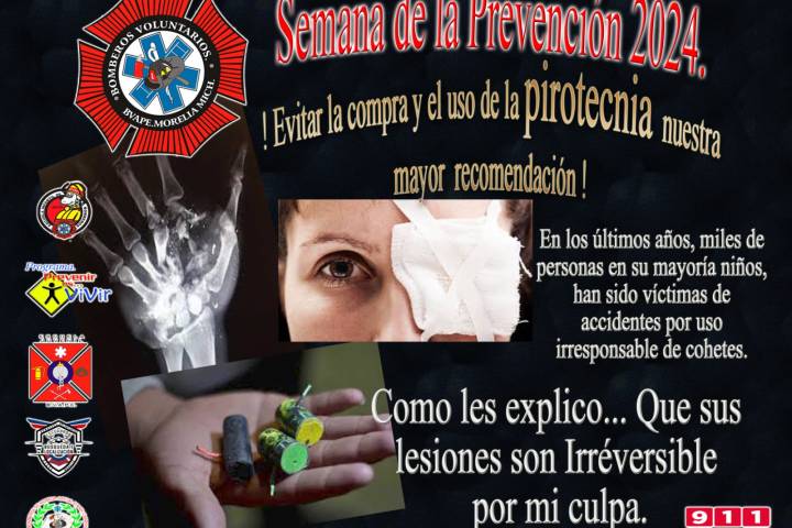 NOTICIAS 13/12/2024¡Únete a nuestra campaña para evitar la compra y el uso de pirotecnia!Los Bomberos Voluntarios Morelia BVAPE nos unimos para promover la conciencia y la seguridad en nuestra comunidad. En esta época de celebraciones, es importante recordar que la pirotecnia puede ser peligrosa y causar daños a personas y propiedades.